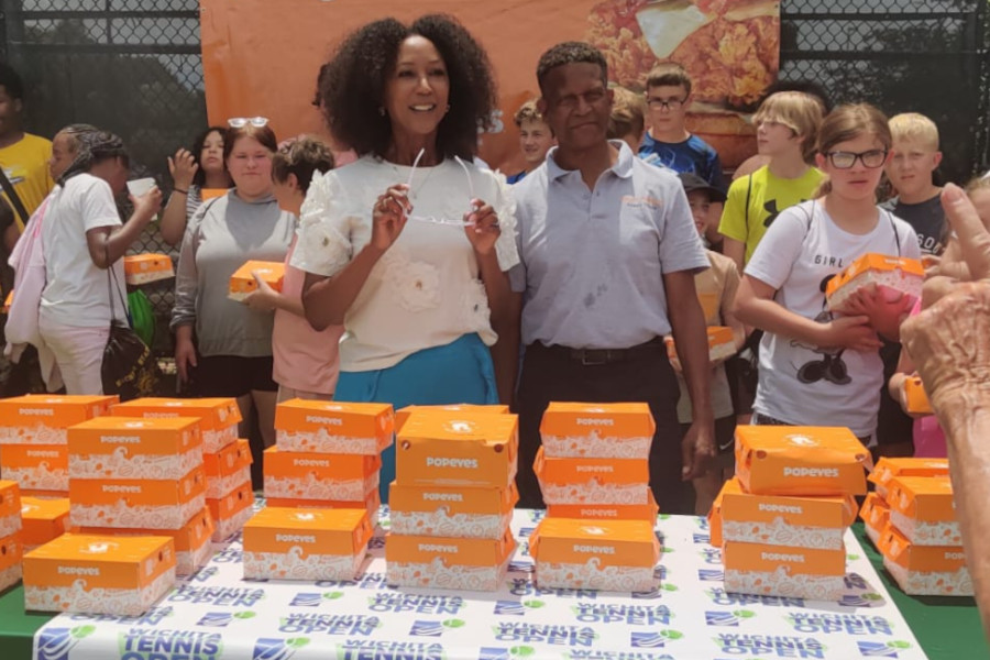 Now members of the Wichita Community Tennis Board, the McGilbrays’ presence at the annual Wichita Tennis Open, which draws rising pro players to Wichita State University each summer, means both food and fashion for attendees of all ages. Popeyes provides food for the children attending the USTA-hosted Kids’ Day, and Popeyes and Jewel Angels help sponsor the event.